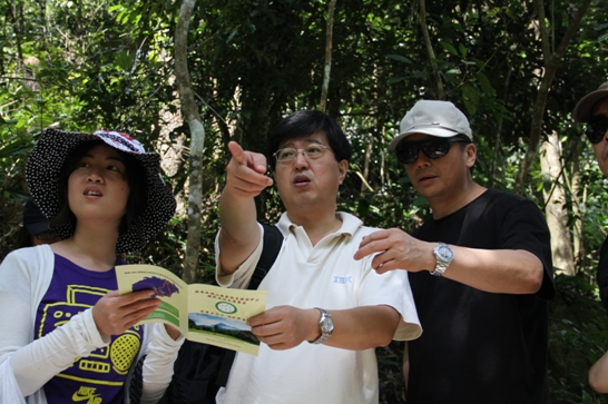 5月11日上午8時許出發,經過兩小時二十分的車程,登山隊伍順利抵達了五指山下。在真正看到素有海南島象征的五指山后,大家都被眼前的美景所陶醉,放眼望去,群山環繞,云海茫茫。在觀山臺正面眺望五指山,五峰并列如擎天五指,在云海中時隱時現,盡收眼底。隨著一聲令下,大家迅速收拾起陶醉的心情,開始向頂峰攀登。景區內古樹參天,巨石嵯峨,藤蘿密布,奇花異草隨處可見,大家一邊登山,一邊欣賞著美景,心情格外的舒暢歡愉。途中歡聲笑語不時響起,團隊氣氛輕松融洽,在一些陡峭難行的路段,大家相互幫助,你托我扶,處處體現著同事間的關愛和團隊協作精神。隨著時間的推移,腳力好的隊員沖鋒在前,已尋不到蹤影。午后一點,天空逐漸陰了下來,不時有點點雨星落下,看著遠遠的山峰,腳下盤根錯節,蜿蜒陡峭的山路,為了安全起見,大家決定簡單休整后下山。當聚在半山腰,圍坐在一起,盡情領略著熱帶原始森林的秀美,享受著精美的午餐時,大家忘卻了登山的勞頓,說說笑笑,儼然成了這美景中的一部分。沖在前面的兩名隊員遲遲未能回歸,經過一番聯系,電話那頭傳來興奮、驚喜地聲音,原來他們已經登上了最高峰……下午四時許,12名隊員在回程的路上熱鬧的交流著登山的感受,兩名登到頂峰的隊員,更是激動興奮地給大家講頂峰奇特瑰麗的風景,聽得大家仿佛置身其中一斑。