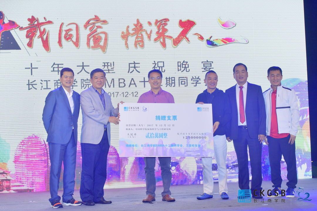 12月12日,長江商學院EMBA十二期同學會慶祝晚宴暨“中華白海豚研究與保護”專項基金捐贈儀式在三亞海棠灣天成洲際酒店舉行。在晚宴上,長江商學院EMBA十二期同學會聯合三亞校友會向中國科學院深海科學與工程研究所(以下簡稱“深海所”)捐贈款項20萬元,用于支持中華白海豚的研究和保護工作。深海所副所長代亮和李松海研究員出席了晚宴活動。