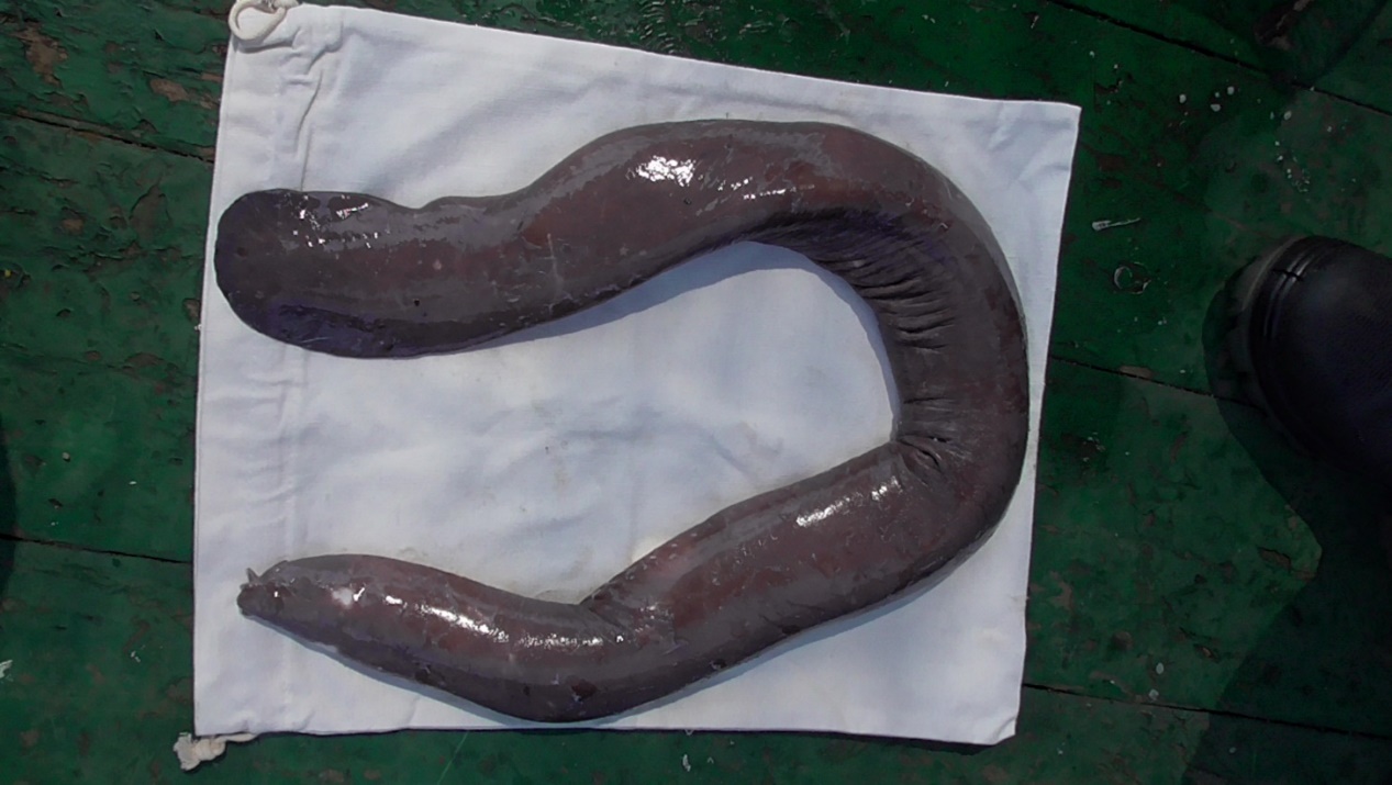 4、本次海試同時(shí)成功誘捕了大王具足蟲7只,最大長(zhǎng)度25cm;盲鰻1只,全長(zhǎng)90cm,為深海生物的研究提供了新的樣本。