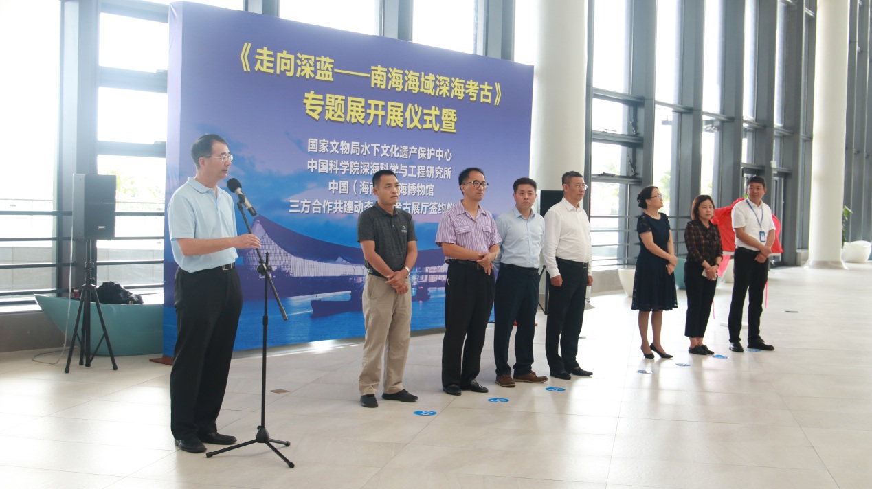 2019322日上午,《走向深藍——南海海域深??脊拧穼n}展開展儀式暨國家文物局水下文化遺產保護中心、中國科學院深??茖W與工程研究所、中國(海南)南海博物館三方合作共建動態水下考古展廳簽約儀式在中國(海南)南海博物館順利舉行。