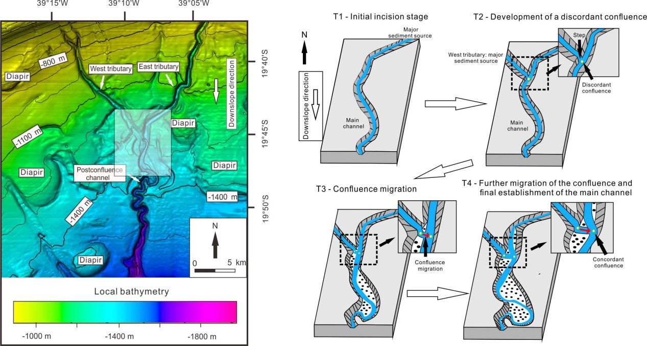 此項研究近期在線發表于國際地質學期刊《Geological Society of America Bulletin》( Y. Qin *, T. Alves, J. Constantine, D. Gamboa, S. Wu, Effect of channel tributaries on the evolution of submarine channel confluences (Espírito Santo Basin, SE Brazil)),由中科院深海所、英國卡迪夫大學,美國威廉姆斯學院和英國地質調查局科研人員共同完成,深海所博士后秦永鵬為本文第一作者。?