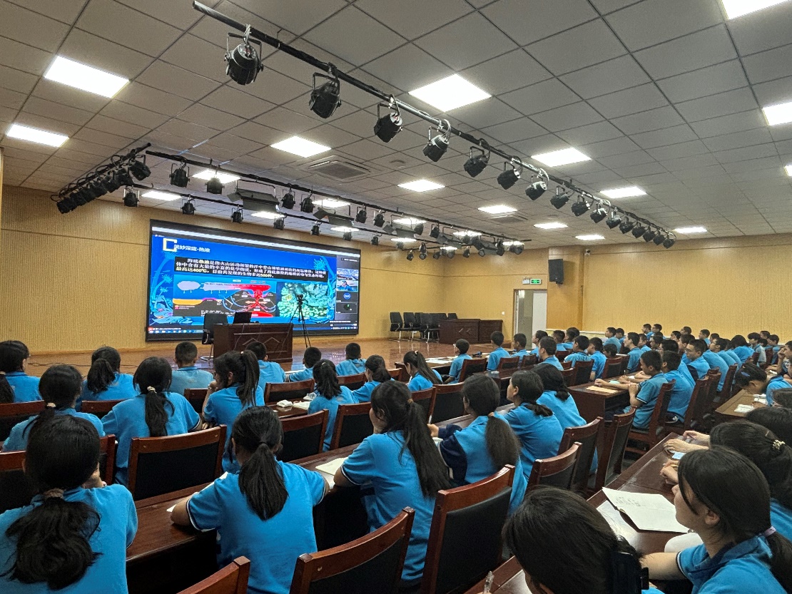 科普?qǐng)?bào)告還連線了新疆生產(chǎn)建設(shè)兵團(tuán)第二師八一中學(xué)的300余名學(xué)生,同學(xué)們認(rèn)真聽取了報(bào)告,并與海南會(huì)場(chǎng)的同學(xué)們一道與老師進(jìn)行互動(dòng)問(wèn)答。同學(xué)們紛紛表示,感受了到大海與星空的美妙與神奇,體驗(yàn)到科技帶來(lái)的樂(lè)趣。