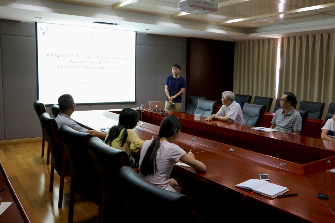 712日,應深海極端環境模擬研究實驗室周義明研究員的邀請,美國約翰霍普金斯大學地球與行星科學系博士生黃放到所訪問交流,作了題為“Vinegar into Oil: High Pressure Changes Aqueous Acetate to Immiscible Hydrocarbon Fluid”的學術報告。