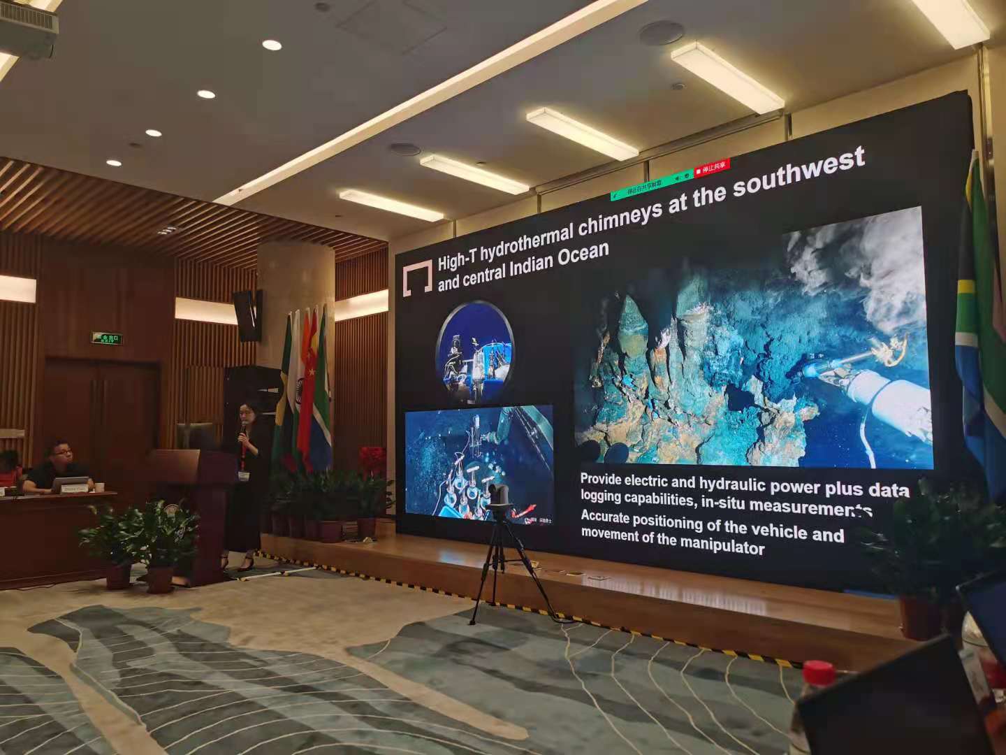 深海所科學部副主任張維佳副研究員代表深海所參會,并做題為“利用載人潛水器揭示深海未解之謎”會議報告。張維佳副研究員向與會代表詳細介紹了深海所當前載人深潛裝備條件、運維能力及依托載人深潛器開展深海科考的新近發現。通過與世界主要載人潛水器相應技術指標和運行能力對比,展現了我國“深海勇士”號、“奮斗者”號載人深潛器在深海科考應用方面的實力和水平。會上,深海所提出的依托載人深潛器聯合開展全球深淵深潛探索計劃的提議受到金磚國家熱烈響應。巴西、南非等國多家大學和科研機構,當即表達出對聯合科考強烈的合作意愿。