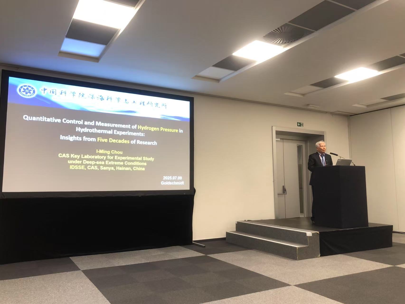近日,深海極端環(huán)境模擬研究實(shí)驗(yàn)室周義明研究員等一行5人參加了2025年戈?duì)柕率┟芴貢?huì)議(Goldschmidt Conference),4人作了口頭報(bào)告,1人作了墻報(bào)展示。周義明研究員在會(huì)上介紹了水熱實(shí)驗(yàn)中氫氣壓力的定量控制與測(cè)量技術(shù)。