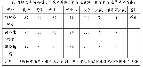 1、復試采用口試與筆試相結合方式進行。筆試各專業分別對應考試《海洋生物學》《物理海洋》《海洋地質與地球化學》,統一參考書目為《海洋科學導論》(高等教育出版社,作者馮士筰、李鳳岐)。英語聽力和口語測試由老師通過口試方式完成,專業復試內容主要考察考生的綜合素質與培養潛質以及對學科基礎知識、所學專業知識的掌握程度等;思想品德的面試包括考生的政治態度、思想品德、工作學習態度、團隊合作精神、科研道德、遵紀守法以及心理素質等內容。