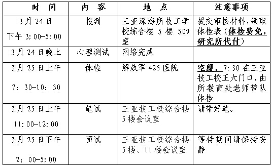 中科院深海科學與工程研究所2016年招收碩士研究生復試工作定于2016325日在三亞進行。具體內容如下: