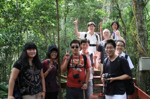 5月11日上午8時(shí)許出發(fā),經(jīng)過(guò)兩小時(shí)二十分的車程,登山隊(duì)伍順利抵達(dá)了五指山下。在真正看到素有海南島象征的五指山后,大家都被眼前的美景所陶醉,放眼望去,群山環(huán)繞,云海茫茫。在觀山臺(tái)正面眺望五指山,五峰并列如擎天五指,在云海中時(shí)隱時(shí)現(xiàn),盡收眼底。隨著一聲令下,大家迅速收拾起陶醉的心情,開(kāi)始向頂峰攀登。景區(qū)內(nèi)古樹(shù)參天,巨石嵯峨,藤蘿密布,奇花異草隨處可見(jiàn),大家一邊登山,一邊欣賞著美景,心情格外的舒暢歡愉。途中歡聲笑語(yǔ)不時(shí)響起,團(tuán)隊(duì)氣氛輕松融洽,在一些陡峭難行的路段,大家相互幫助,你托我扶,處處體現(xiàn)著同事間的關(guān)愛(ài)和團(tuán)隊(duì)協(xié)作精神。隨著時(shí)間的推移,腳力好的隊(duì)員沖鋒在前,已尋不到蹤影。午后一點(diǎn),天空逐漸陰了下來(lái),不時(shí)有點(diǎn)點(diǎn)雨星落下,看著遠(yuǎn)遠(yuǎn)的山峰,腳下盤根錯(cuò)節(jié),蜿蜒陡峭的山路,為了安全起見(jiàn),大家決定簡(jiǎn)單休整后下山。當(dāng)聚在半山腰,圍坐在一起,盡情領(lǐng)略著熱帶原始森林的秀美,享受著精美的午餐時(shí),大家忘卻了登山的勞頓,說(shuō)說(shuō)笑笑,儼然成了這美景中的一部分。沖在前面的兩名隊(duì)員遲遲未能回歸,經(jīng)過(guò)一番聯(lián)系,電話那頭傳來(lái)興奮、驚喜地聲音,原來(lái)他們已經(jīng)登上了最高峰……下午四時(shí)許,12名隊(duì)員在回程的路上熱鬧的交流著登山的感受,兩名登到頂峰的隊(duì)員,更是激動(dòng)興奮地給大家講頂峰奇特瑰麗的風(fēng)景,聽(tīng)得大家仿佛置身其中一斑。