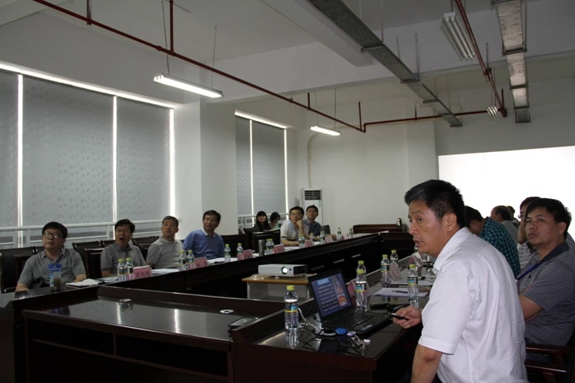 代亮首先代表三亞深海所對黃寧生院長一行表示歡迎,同時對廣州分院在籌建工作上給予的支持和指導表示感謝。隨后,代亮從建所背景、籌建方案、籌建工作進展、2013年的主要工作四個方面詳細介紹了三亞深海所籌建工作開展情況??偣こ處煆埌鹤髁岁P于組織凝練重大項目的專題匯報。深海科學研究部研究員李松海向分院領導匯報了海洋哺乳動物與海洋生物聲學實驗室建設情況。