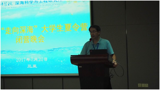 在夏令營的閉幕式上,丁抗所長做了閉幕致辭。他給同學(xué)們講述了海洋在地球上的重要地位,以及海洋科學(xué)研究對于人類發(fā)展的重要性,希望更多的有志青年學(xué)者能夠加入到深海研究的隊伍中來。最后,夏令營在營員們以精心編排的豐富多彩的晚會節(jié)目中圓滿結(jié)束。