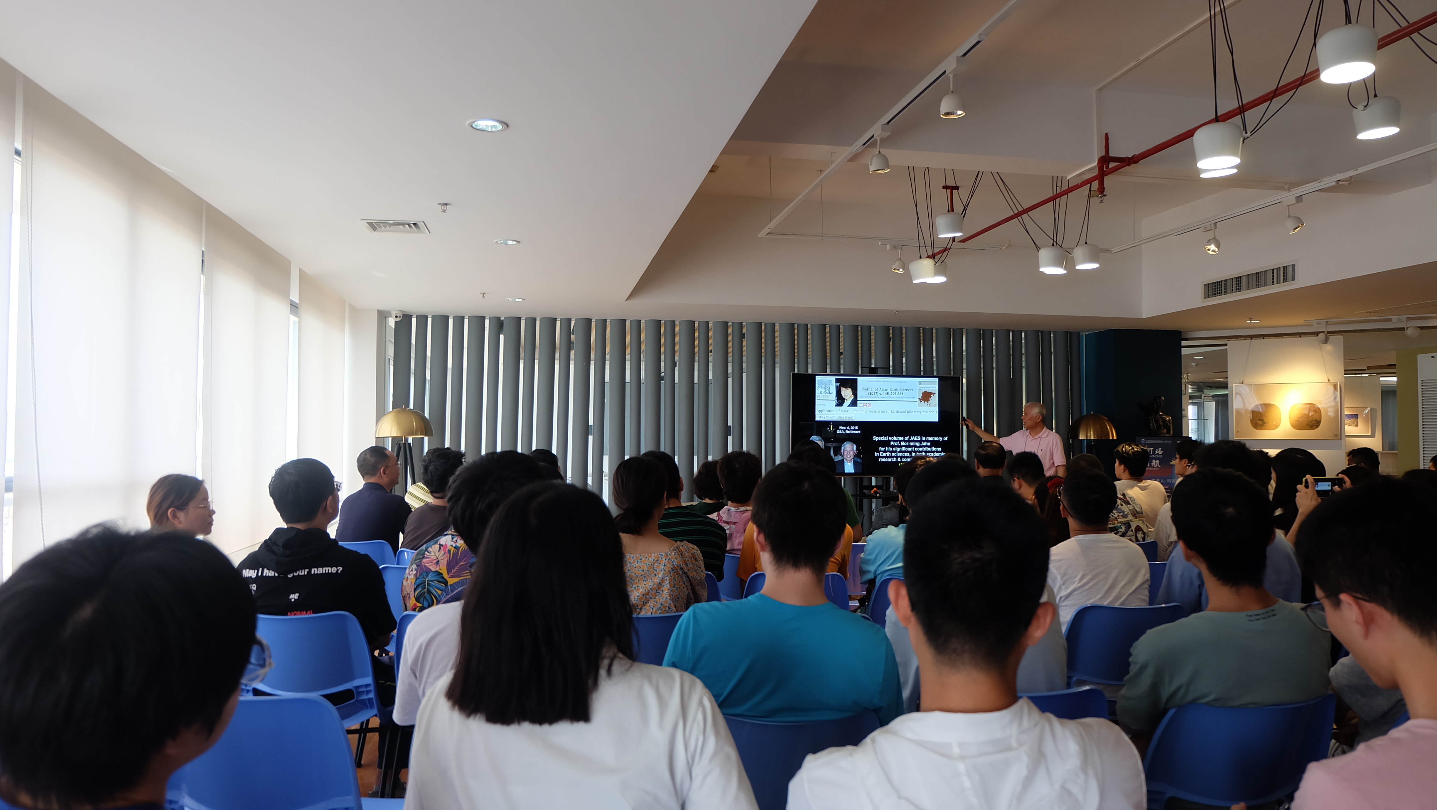 周義明首先介紹了自己的成長和家庭背景,從臺灣大學畢業后,他前往美國約翰霍普金斯大學繼續攻讀博士學位。博士后結束后,加入美國地質調查局——這是他當時收到的三份工作錄用中薪資最低的一份,卻也最有前景。因為在那里有著理想的科研環境,能夠與世界一流的地質學家共事,這對一個地球化學領域的科研工作者來講實屬難得。周義明以自身經歷鼓勵有志從事科研工作的同學們,相比薪酬,選擇更高的平臺開始職業生涯,對個人能力的提升有著更大的裨益。
