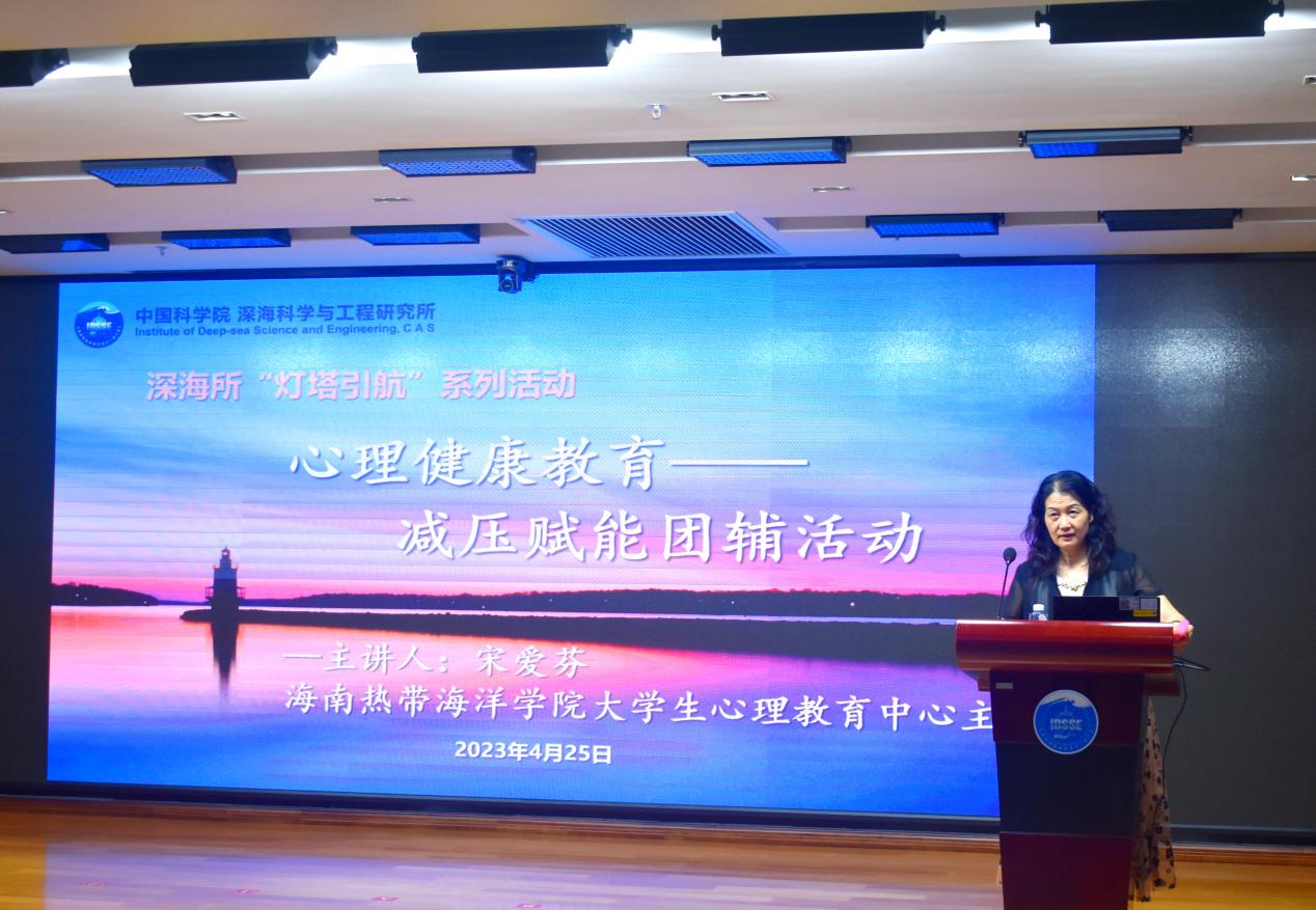 為關(guān)愛(ài)深海所研究生心理健康、緩解學(xué)生心理壓力,4月25日下午,人事教育處特邀海南熱帶海洋學(xué)院大學(xué)生心理教育中心主任宋愛(ài)芬教授來(lái)所開(kāi)展“燈塔引航”系列活動(dòng)第十三講。