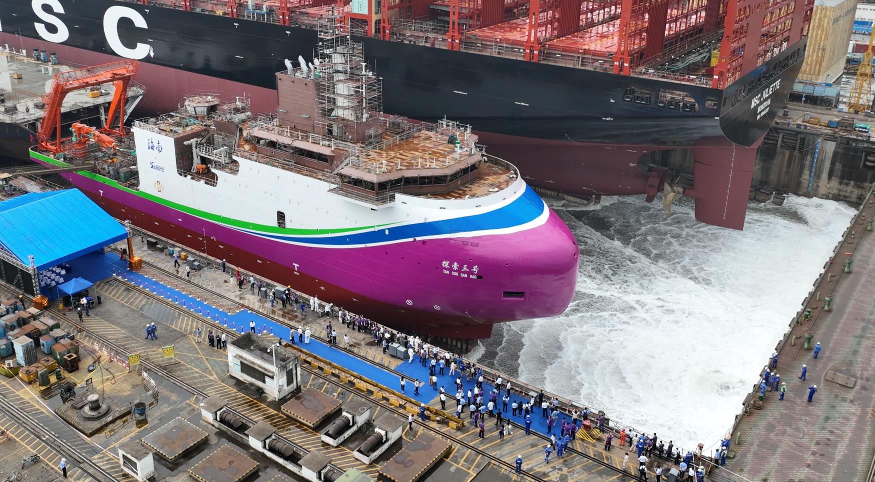 我國首艘深遠海多功能科學考察及文物考古船在中國船舶廣船國際出塢
