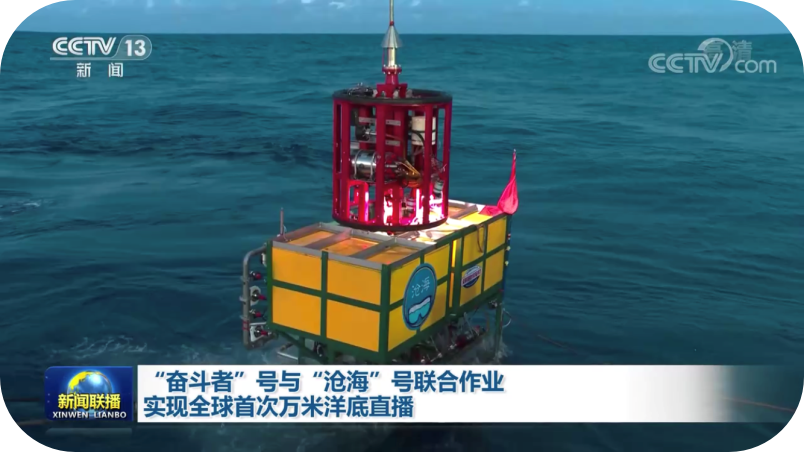 全海深視頻直播系統(tǒng)是在國家重點研發(fā)計劃“深海關鍵技術與裝備”重點專項“全海深視頻直播”項目支持下成功研制的。該系統(tǒng)由“滄?!碧栆曨l直播著陸器、“凌云”號視頻直播著陸器、深海中繼器、水面控制系統(tǒng)和衛(wèi)星直播系統(tǒng)五部分組成。其中,“滄?!碧栆曨l著陸器搭載了項目組研制的全海深超高清3D相機、全海深超高清相機、全海深微光相機、全海深照明系統(tǒng)、全海深無線/有線光通信系統(tǒng)等載荷,具備全海深超高清視頻實時采集、傳輸、處理和直播功能。于2020年11月,與“奮斗者”號全海深載人潛水器在馬里亞納海溝開展聯(lián)合海試作業(yè),將其在萬米海底進行科考作業(yè)的過程,向全國人民進行了世界上首次萬米海底的高清視頻實況直播和科普教育;在國際上首次實現(xiàn)萬米海底“奮斗者”號全海深載人潛水器艙內潛航員與中央廣播電視總臺新聞直播間的實時高清視頻對話。此次成功示范應用,不僅對我國全海深科考提供視頻技術與裝備支撐,同時對我國廣電領域在深海進行高質量的電視信號制作、傳輸提供一條新的途徑。該成果向建黨一百年周年獻上一份賀禮,彰顯我國綜合國力、深海技術與裝備實力,極大增強民族自豪感與自信心。